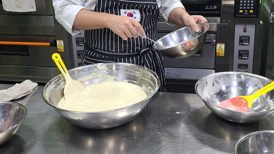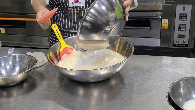 가루류 혼합: 체 친 가루류를 넣고 가볍게 섞어줍니다.